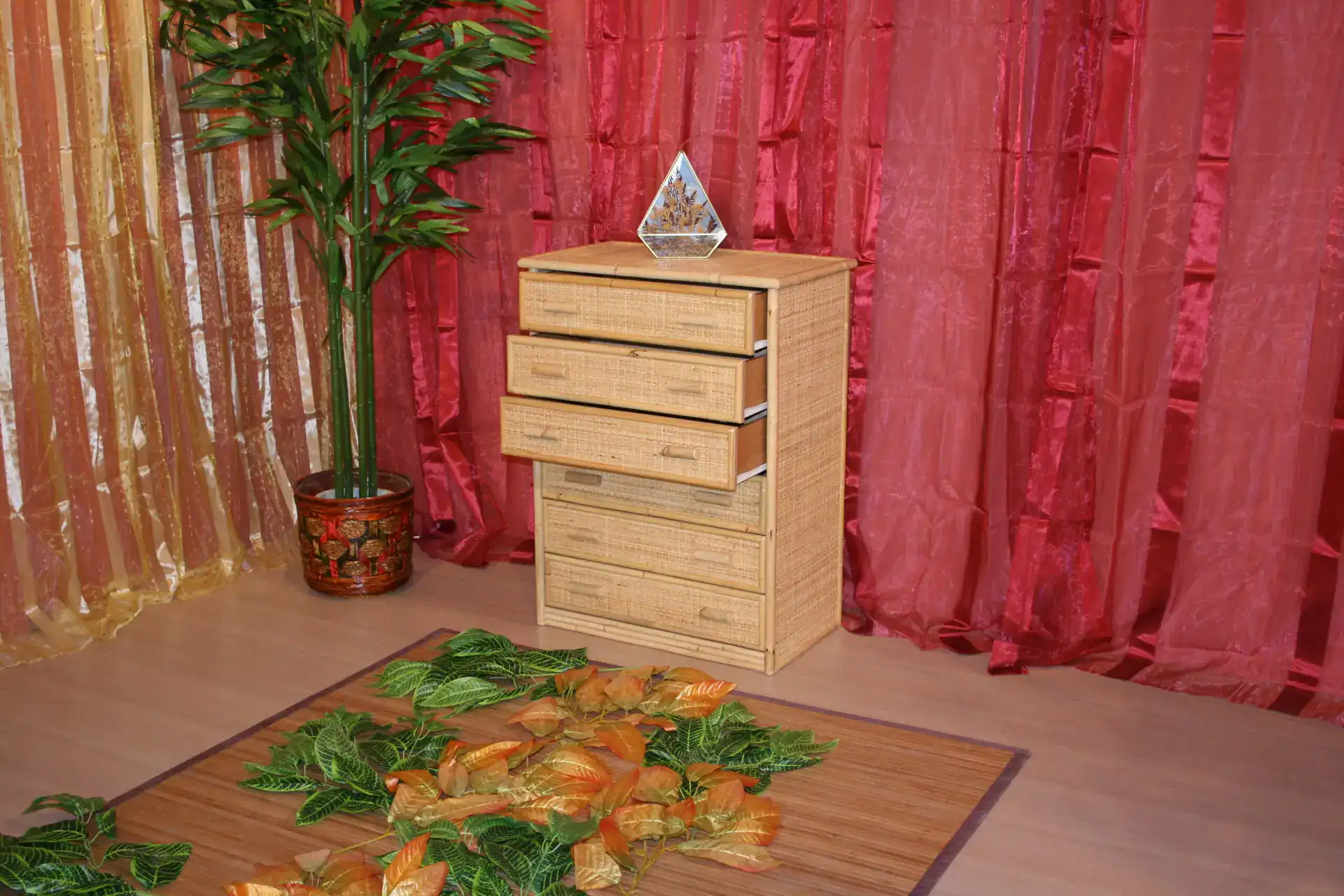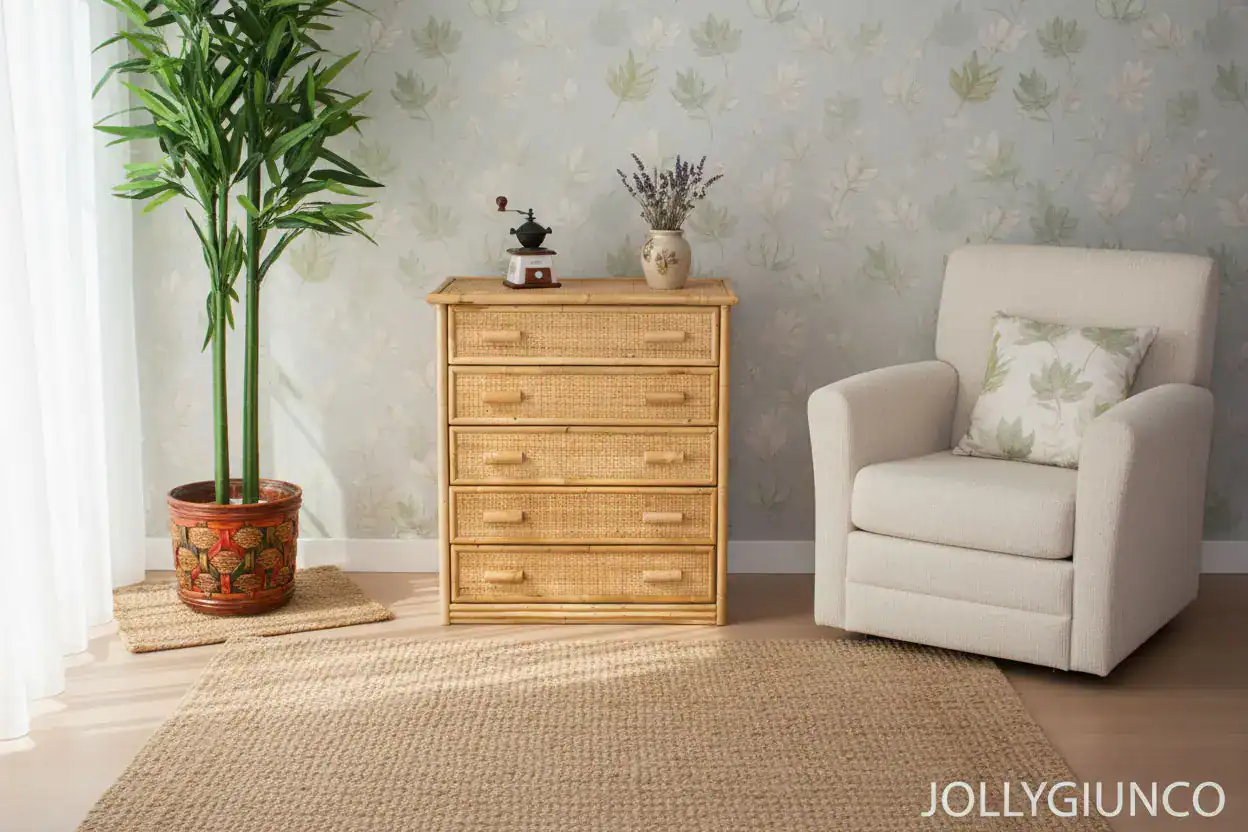 Cassettiera in vimini a 5 cassetti
