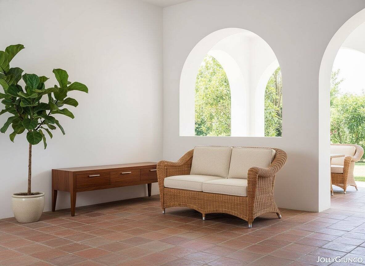 I pezzi che compongono la collezione Consueto hanno un telaio in rattan rivestito in rattan naturale interamente intrecciato a mano da esperti Maestri Artigiani.