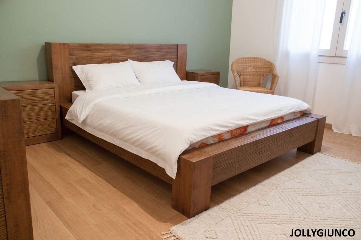 Letto MILANO in crash bambù e legno massiccio