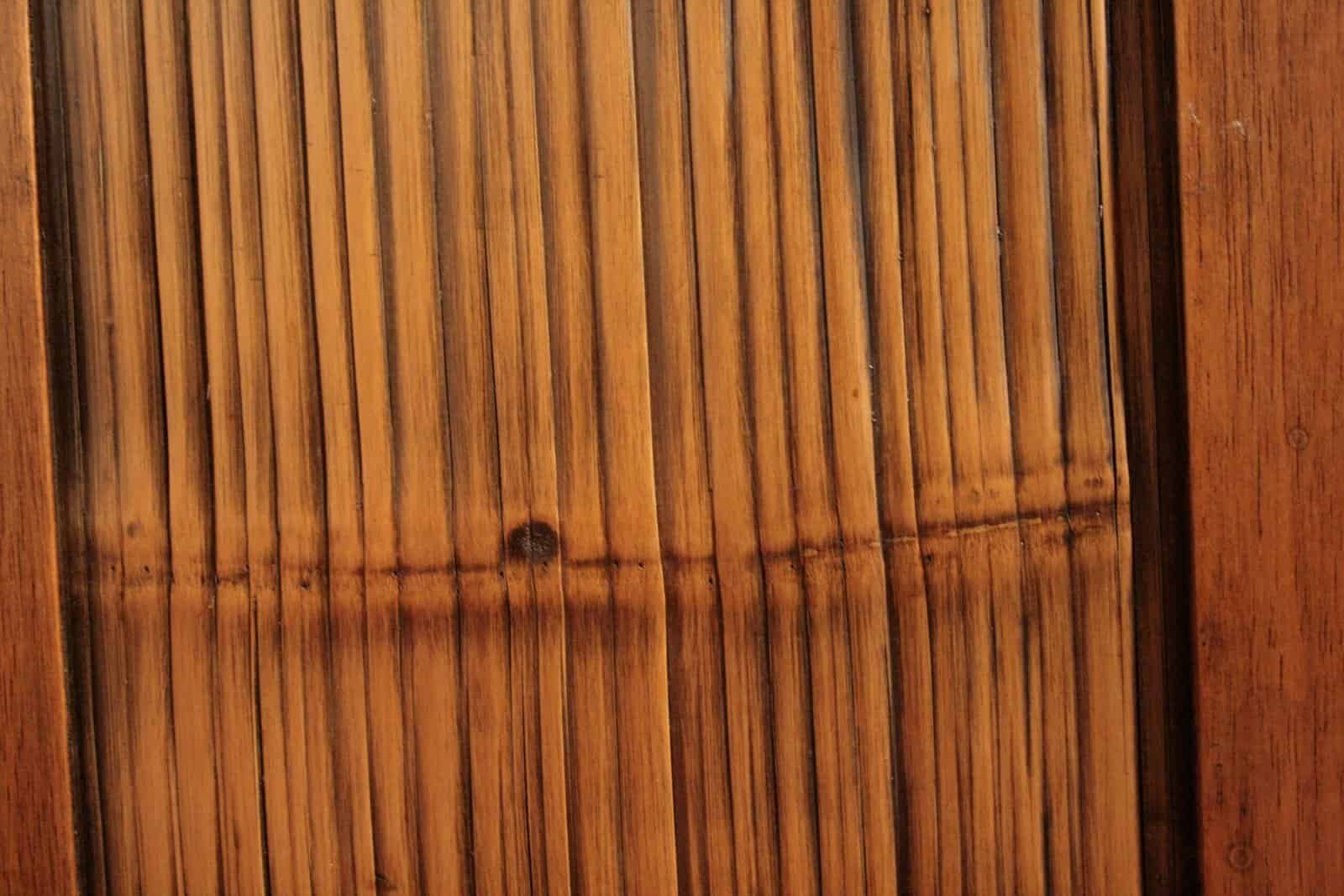 La finitura prevede vernice ad anilina e una polvere nera applicata sia all’esterno che all’interno, per ottenere un raffinato effetto antichizzato che valorizza la texture naturale del bambù.