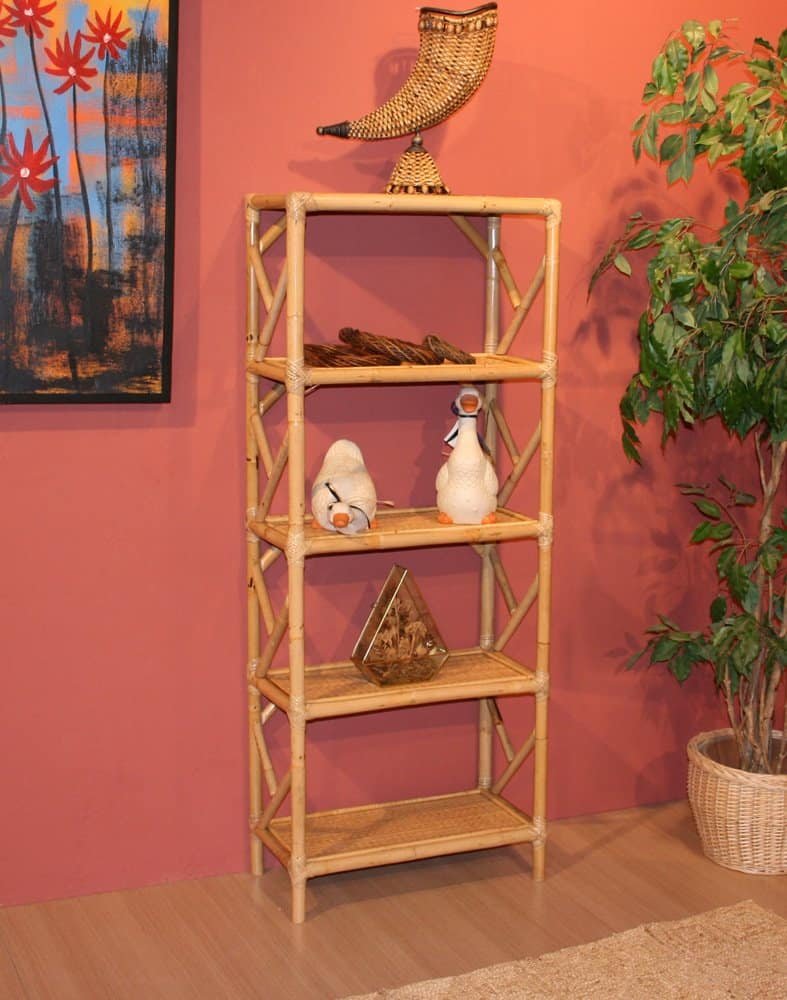 Libreria artigianale in giunco naturale, caratterizzata da linee semplici ed eleganti che valorizzano la bellezza autentica del materiale.