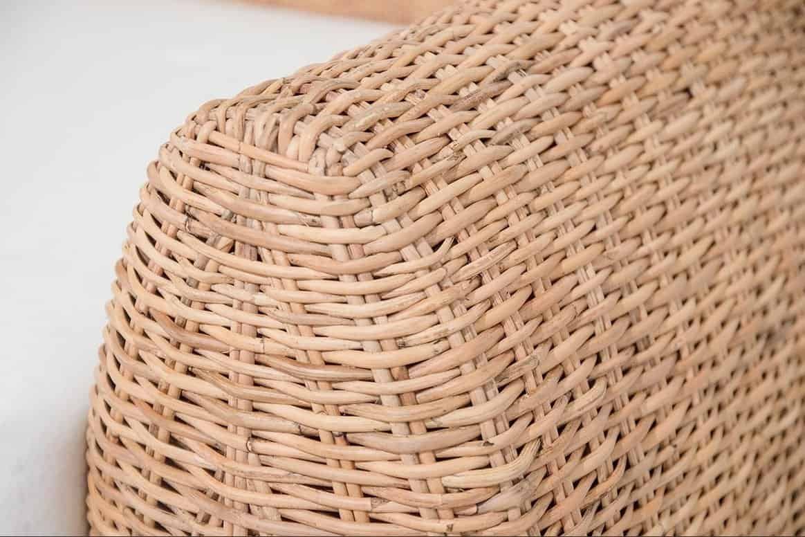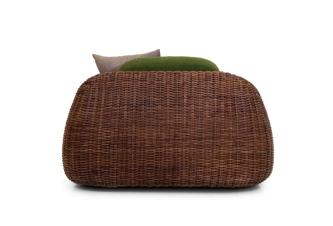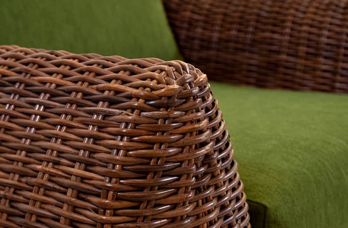 I pezzi che compongono la collezione Mango hanno un telaio in legno rivestito in rattan naturale interamente intrecciato a mano da esperti Maestri Artigiani.