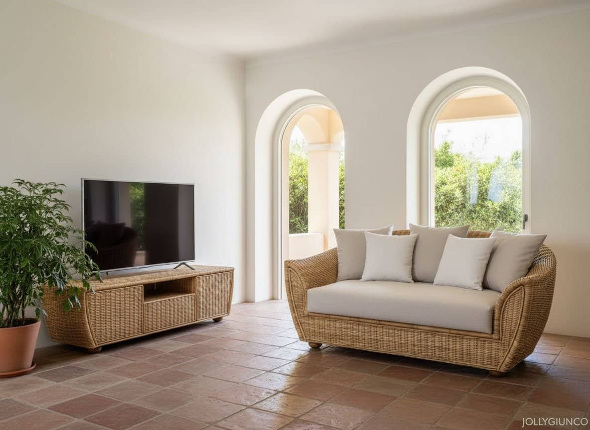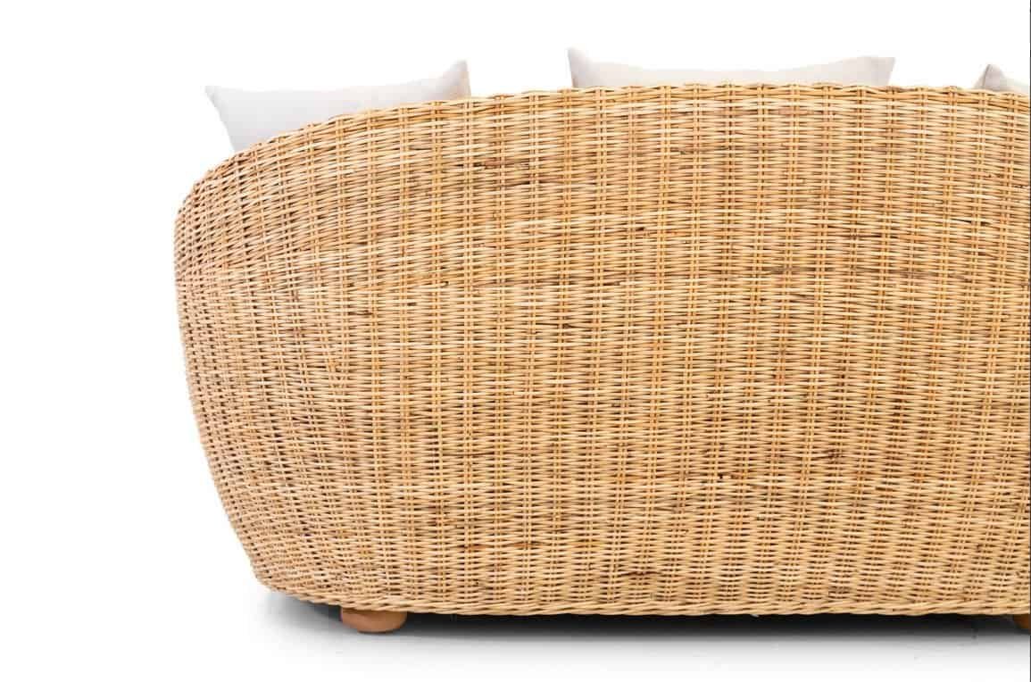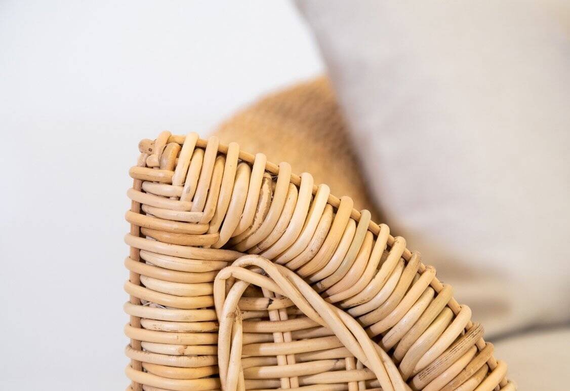 I pezzi che compongono la collezione Retrò hanno un telaio in legno rivestito in rattan naturale interamente intrecciato a mano da esperti Maestri Artigiani.