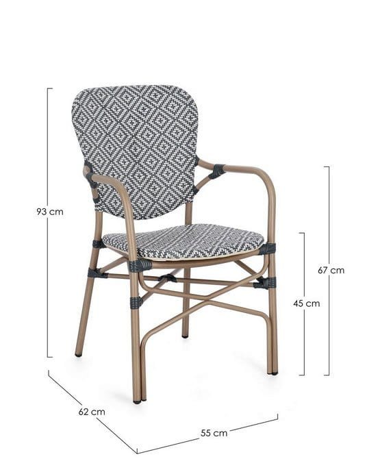 SEDIA CON BRACIOLI CADEIRA CASTEL STRUTTURA IN ALLUMINIO VERNICIATA A POLVERE (POLIESTERE), EFFETTO NATURALE. SEDUTA E SCHIENALE IN TEXTILENE. IMPILABILE. IMBALLO SENZA CARTONE. Misure55a – 62b – 93h – 45h1 – 67h2 Prodotti correlati Mediterraneo divano 3 posti RattanRead more Mobile soggiorno in rattan con 8 p. 6 cas.Read more cesto portapacchiRead more Poltrona in giuncoRead more