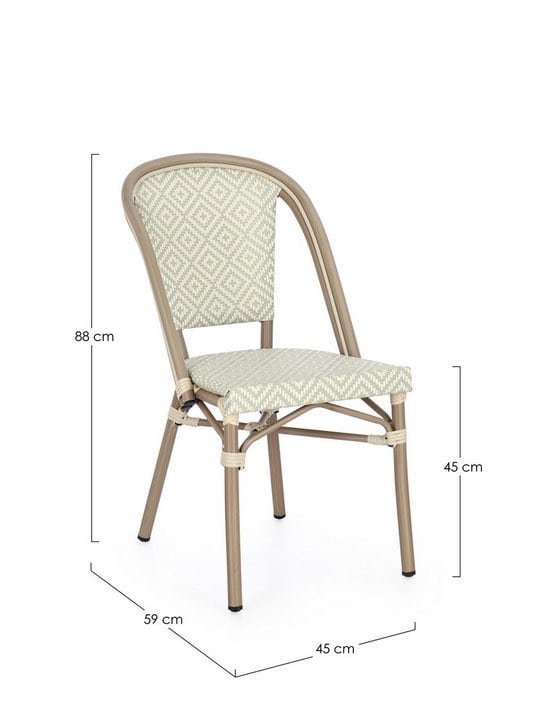 SEDIA SILVEIRA TIFFANY STRUTTURA IN ALLUMINIO VERNICIATA A POLVERE (POLIESTERE), EFFETTO NATURALE. SEDUTA E SCHIENALE IN TEXTILENE. IMPILABILE. IMBALLO SENZA CARTONE. Misure45a – 59b – 88h – 45h1 Descrizione Descrizione STRUTTURA IN ALLUMINIO VERNICIATA A POLVERE (POLIESTERE), EFFETTO NATURALE. SEDUTA E SCHIENALE IN TEXTILENE. IMPILABILE. IMBALLO SENZA CARTONE. Misure45a – 59b – 88h – 45h1 Prodotti correlati Poltrona a dondolo in giuncoRead more Cassettone Bobbio 4 cassetti in rattanRead more Letto Serenità in rattanRead more Poltrona in giuncoRead more