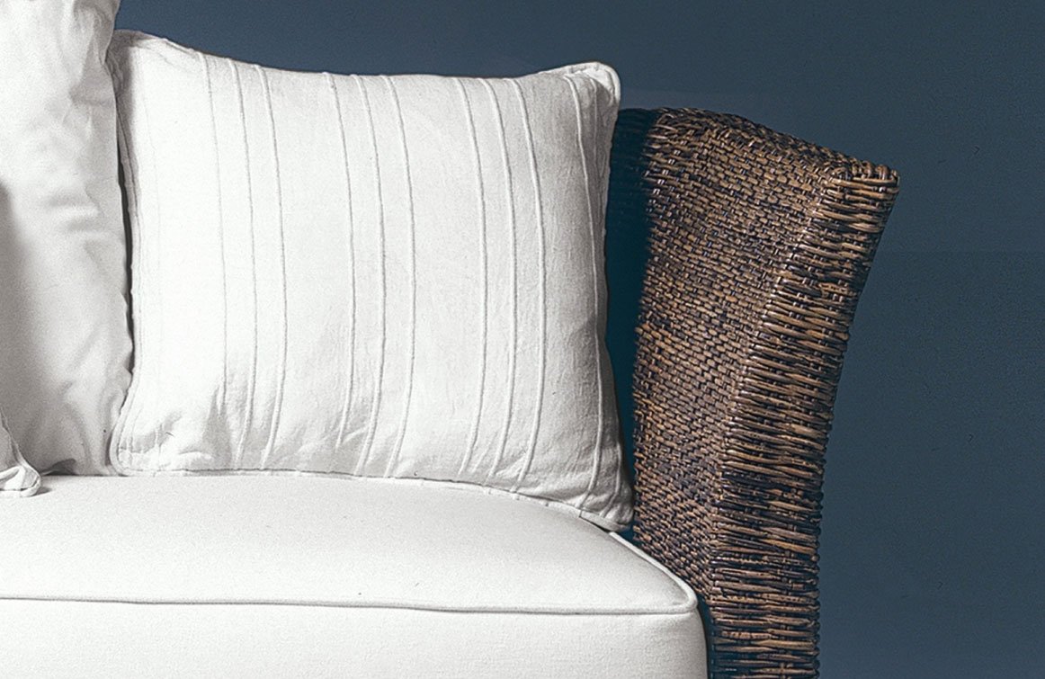Il salotto in rattan Small Size ha un telaio in legno, intrecciato in croco. Finitura trasparente opaca.