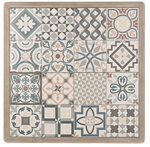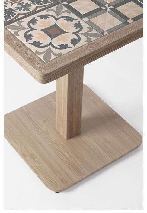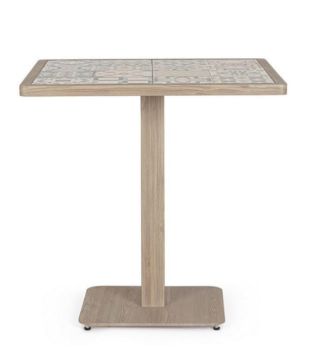 PIANO E GAMBA CENTRALE IN ALLUMINIO VERNICIATO A POLVERE (POLIESTERE). PIANO CON MATTONELLE IN PORCELLANA SMALTATA (PROVENIENZA SPAGNA). BASE IN ACCIAIO TRATTATO PER ESTERNO (E-COATING) E VERNICIATO A POLVERE (POLIESTERE). PIEDINI REGOLABILI. VITERIA IN ACCIAIO INOSSIDABILE. DA ASSEMBLARE.