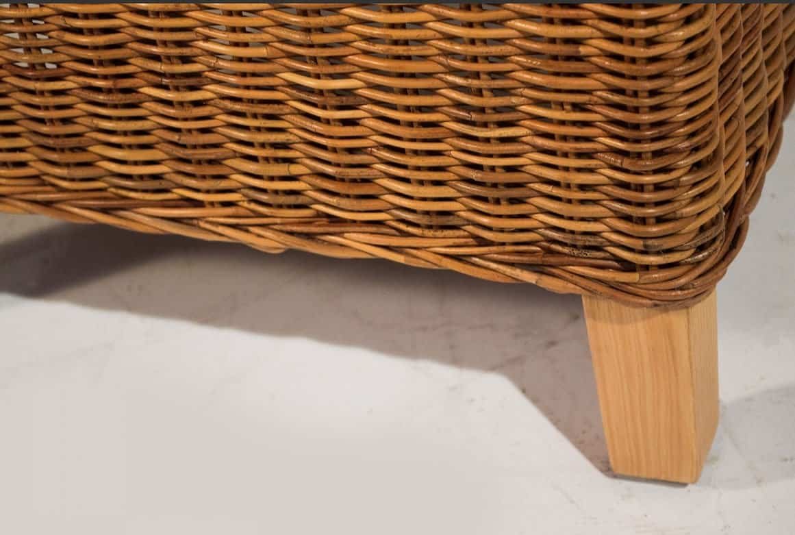 Tavolino con struttura in legno massello, intrecciato in rattan naturale.