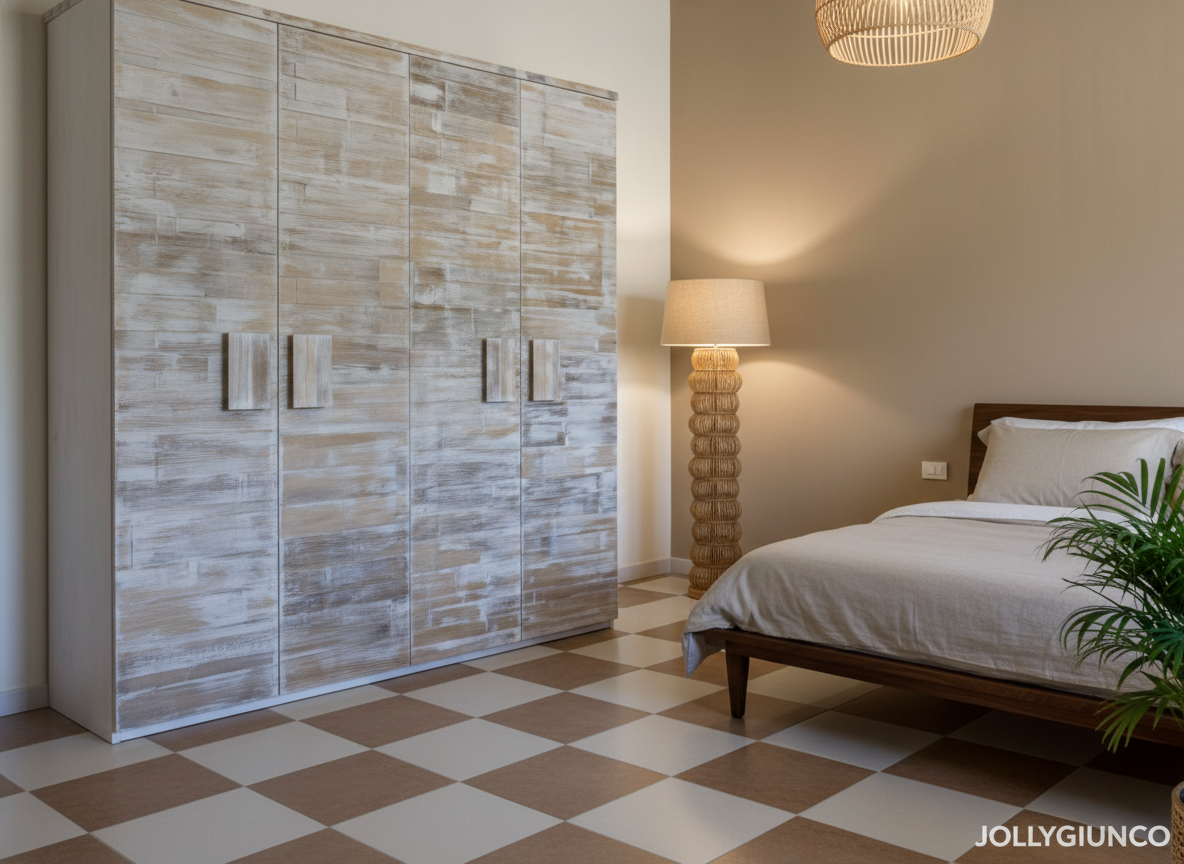 Armadio 4 Ante in Crash Bambù e Legno Massiccio – Finitura Bianco Stracciato