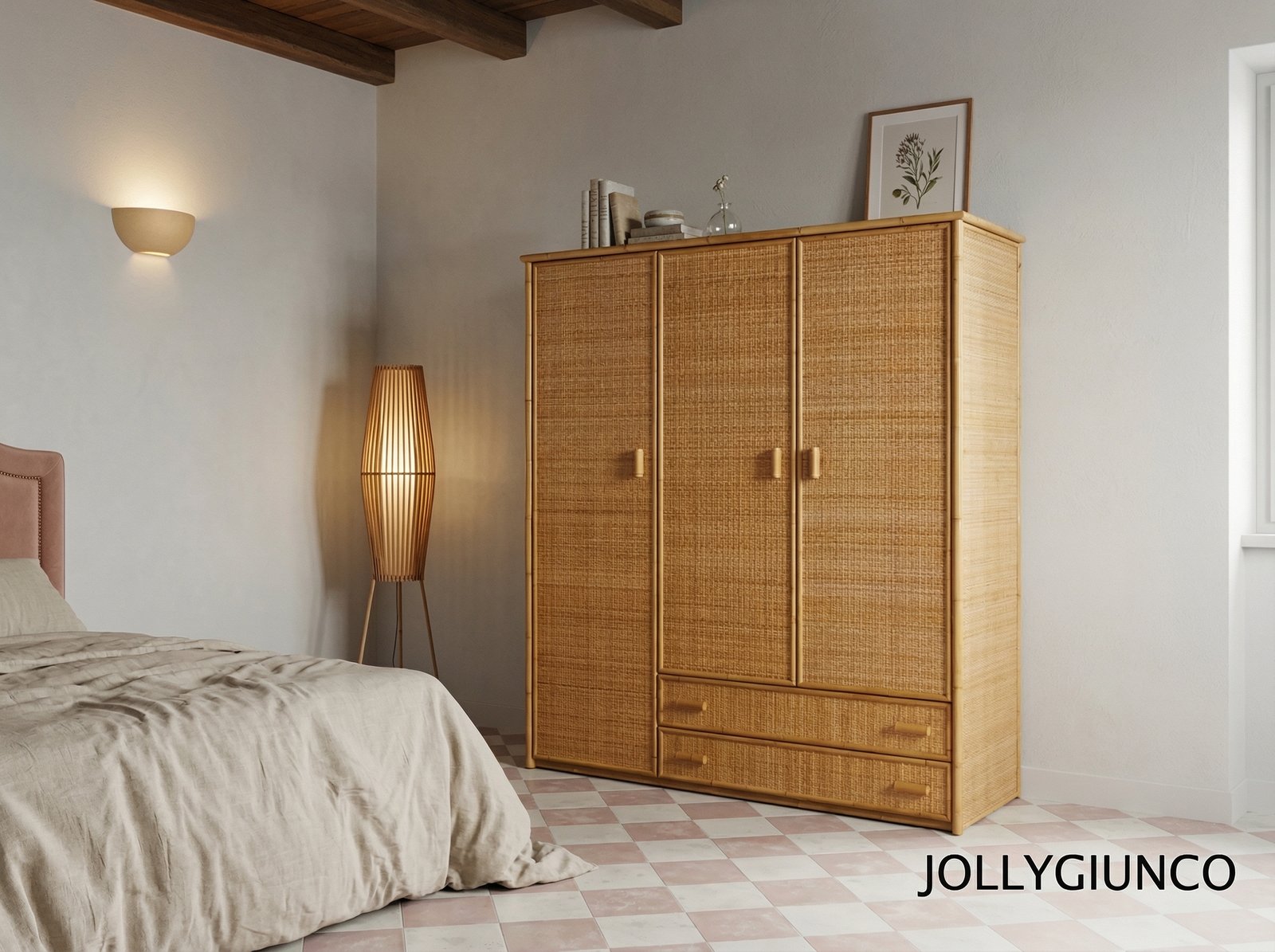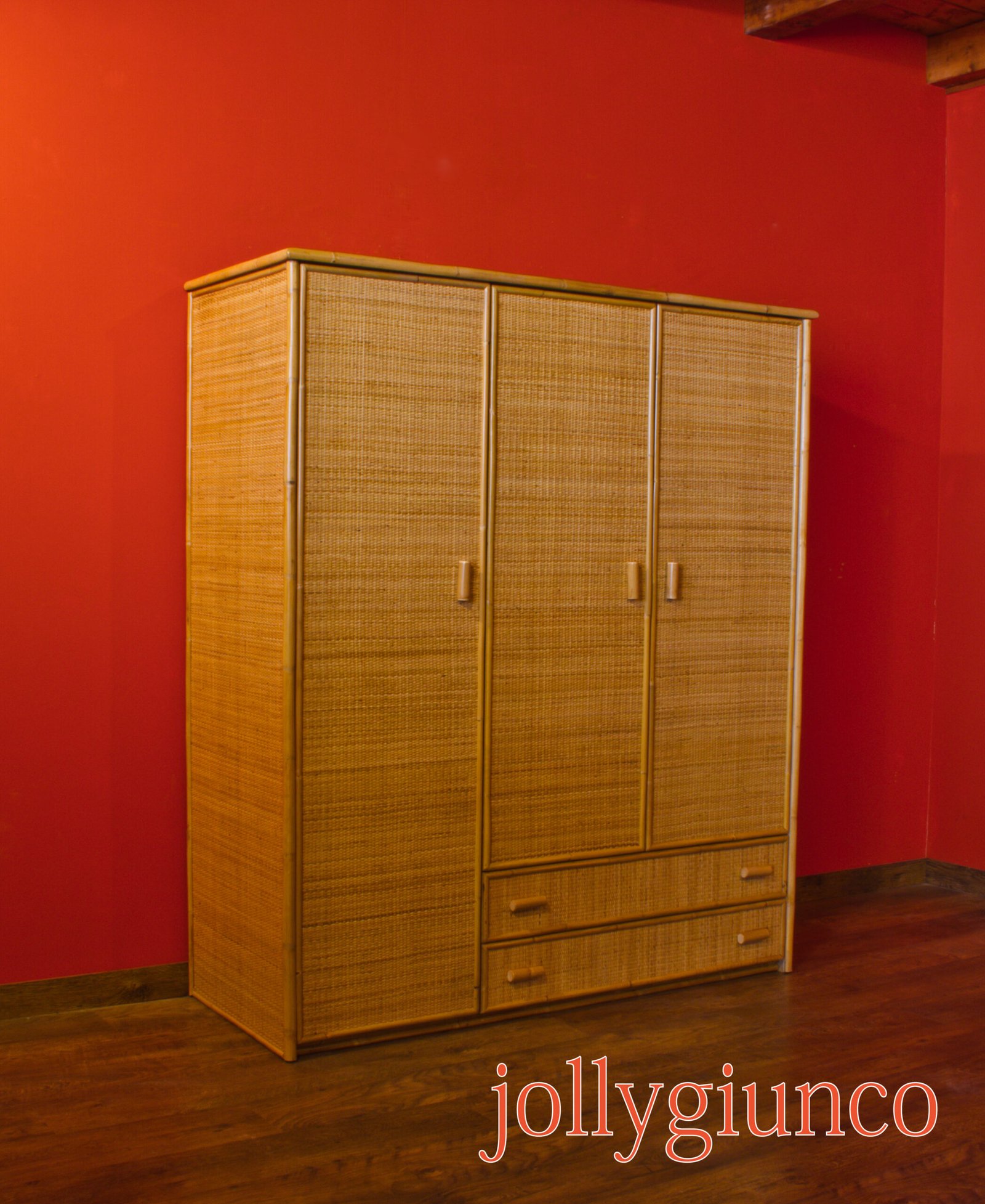 Armadio in giunco 3 ante battenti con cassetti – colore naturale