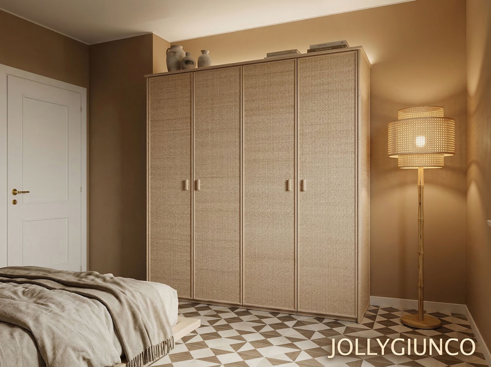 Armadio Alto in Rattan 4 Ante – Finitura Bianco Avorio