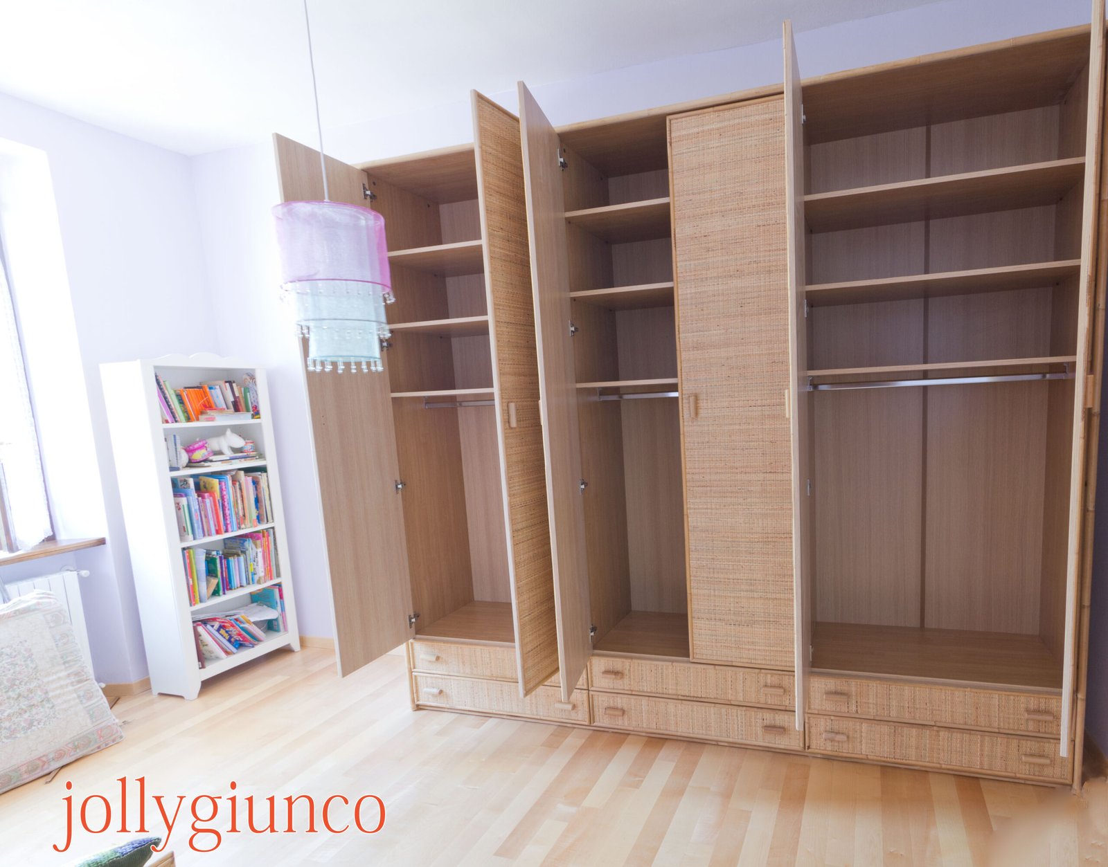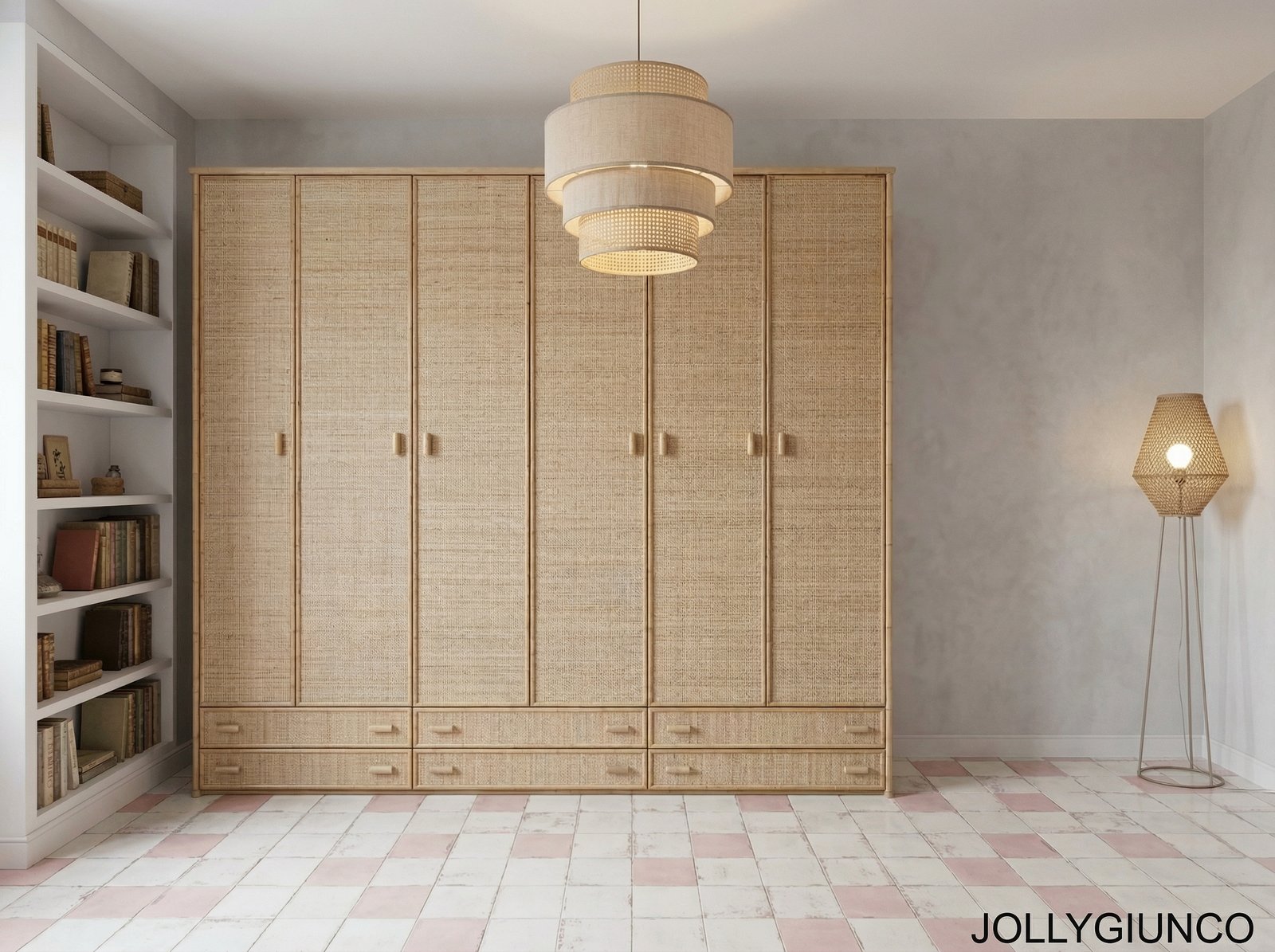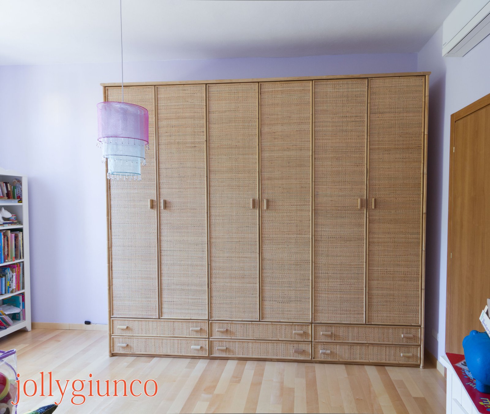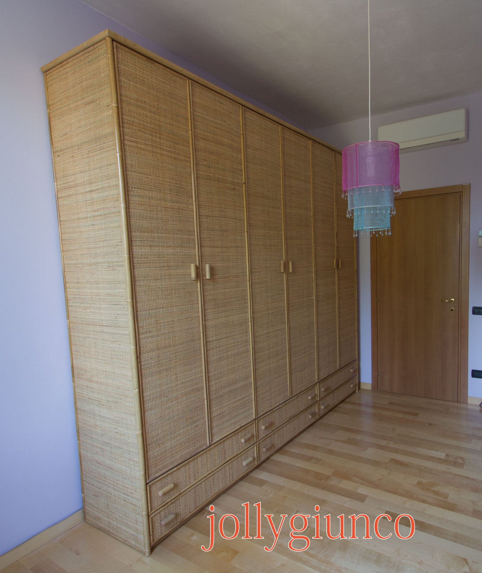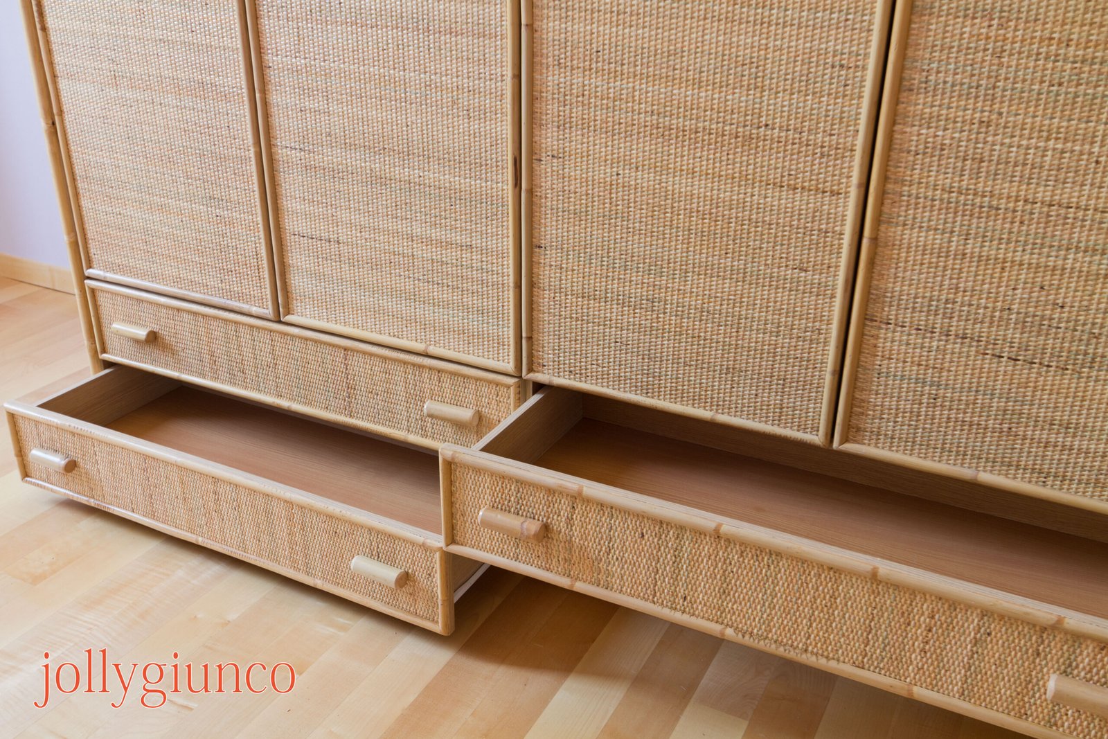 Armadio in giunco 6 ante battenti con cassetti – colore naturale