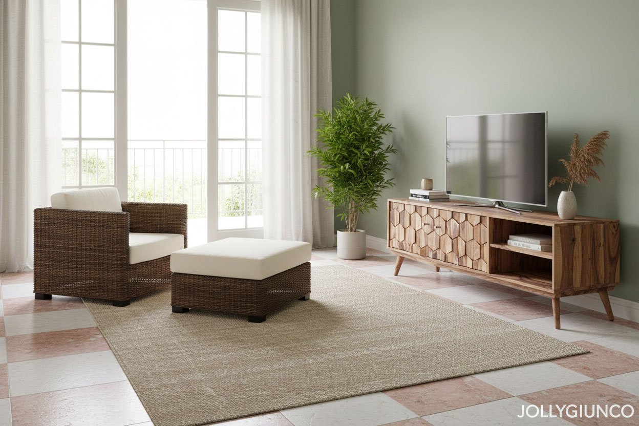 Pouf in Rattan con telaio in legno, intrecciato in croco o giunco naturale da 6mm. Finitura trasparente opaca.