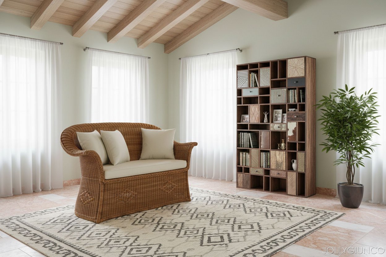 L’elaborata struttura in rattan delle poltrone e divani in rattan Corfù, intrecciato con il midollino, conferirà al vostro salotto raffinatezza, senza riununciare alla comodità grazie al morbido cuscino seduta.