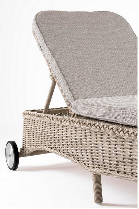 STRUTTURA IN ALLUMINIO VERNICIATO A POLVERE (POLIESTERE), INTRECCIO IN FIBRA SINTETICA (TONDO 5, 3MM).CUSCINI SFODERABILI CON TESSUTO IDROREPELLENTE SUNPROOF OLEFIN (100%POLYPROPYLENE). RUOTE IN ALLUMINIO RIVESTITE DI GOMMA.