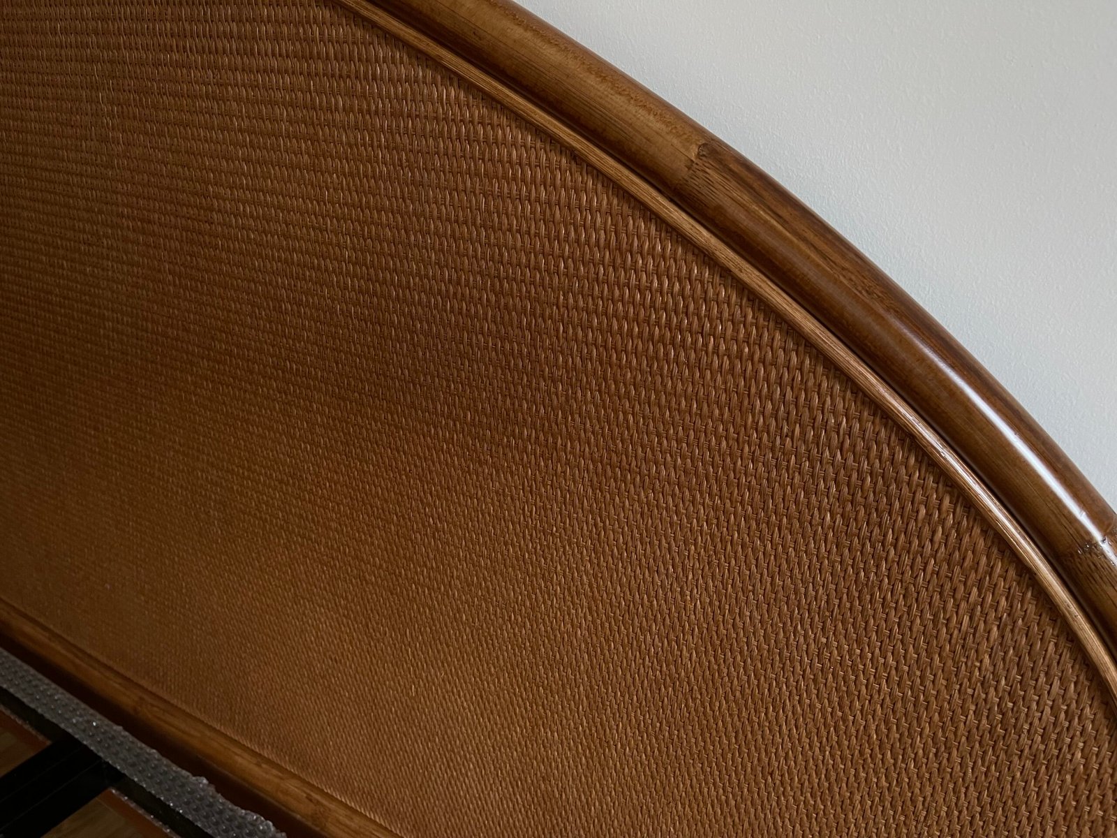 Testiera: ovalizzata con canna in rattan e pannello centrale in tessuto rattan 3×3