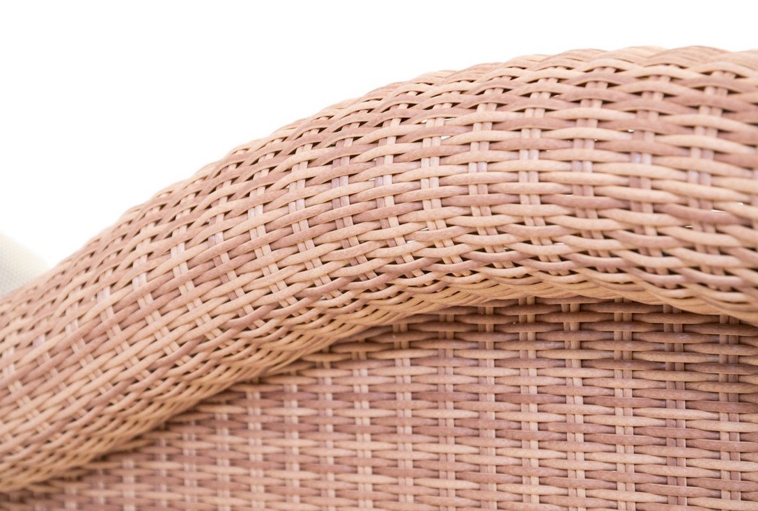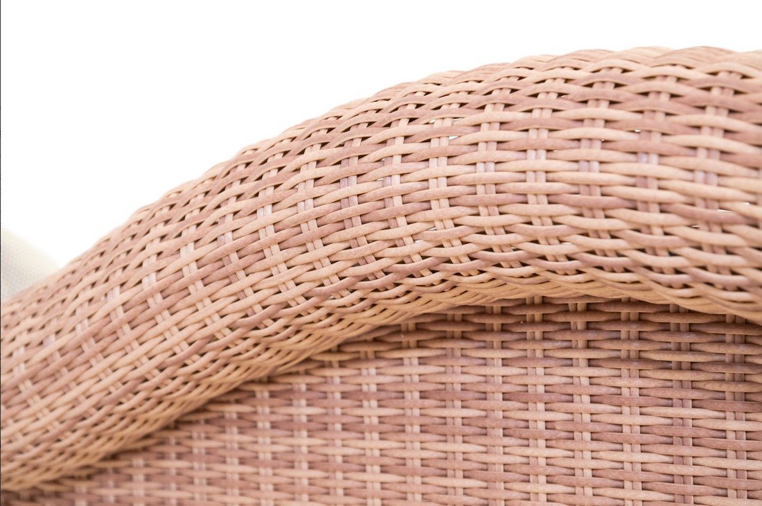 Struttura in alluminio con rivestimento in fibra sintetica (polyrattan), resistente agli agenti atmosferici e adatta anche per uso esterno.
