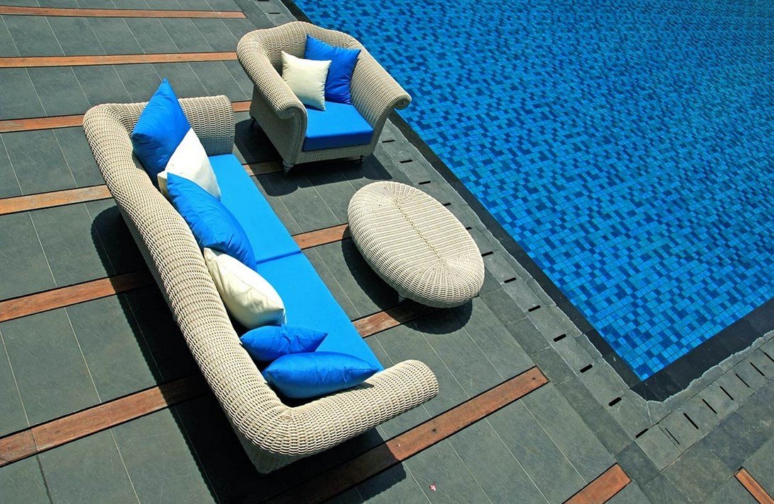 • Struttura in alluminio con rivestimento in fibra sintetica (polyrattan), resistente agli agenti atmosferici e adatta anche per uso esterno.