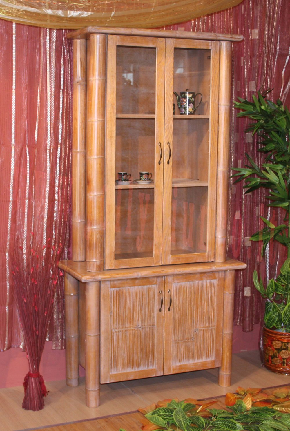 Mobile a 2 porte in bambù e legno massiccio