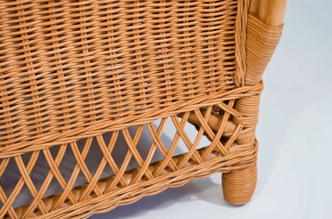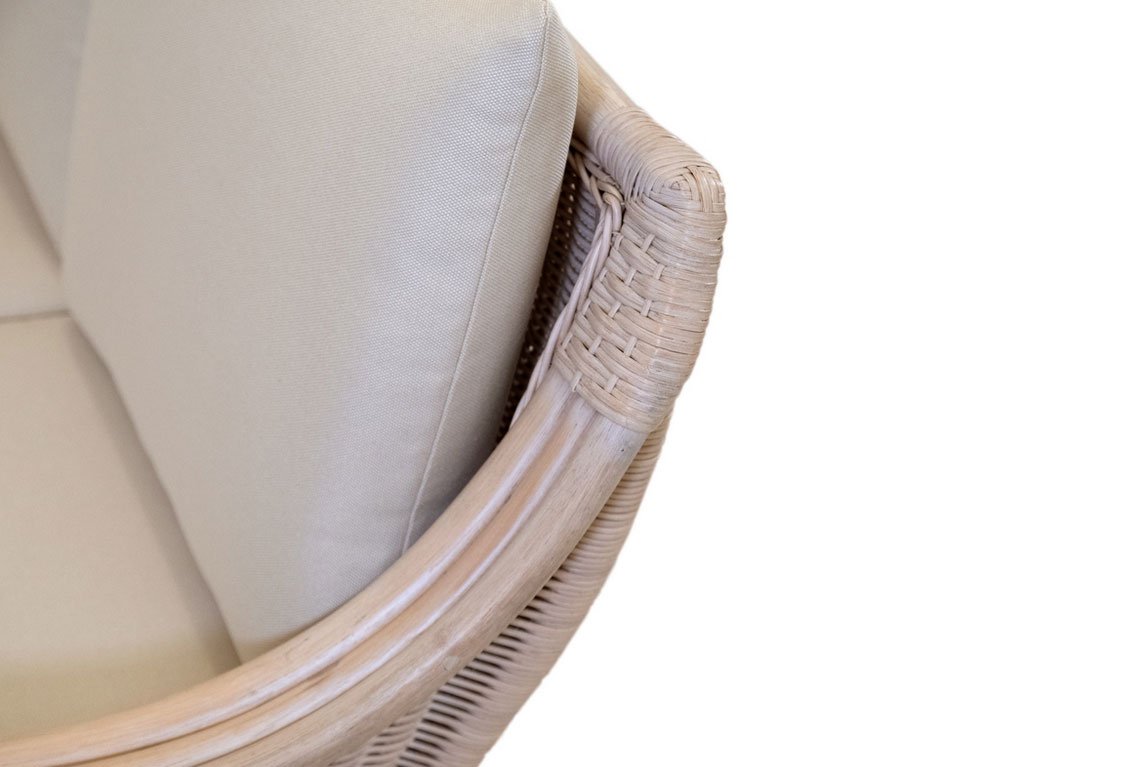 Il salotto in midollino Present ha il telaio in rattan, intrecciato in midollino naturale da 3mm. Finitura trasparente.