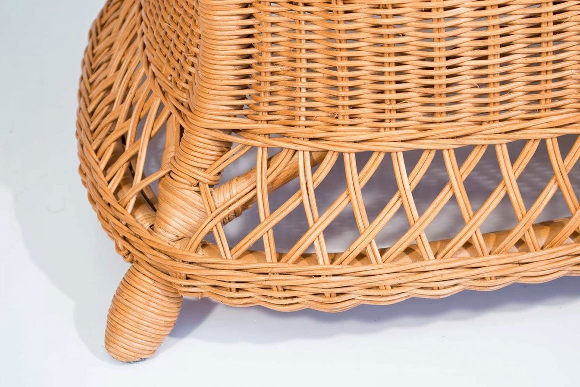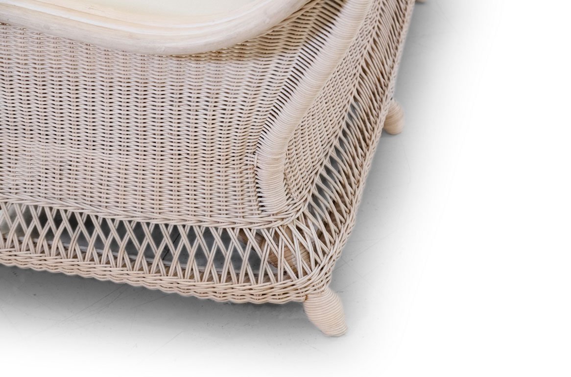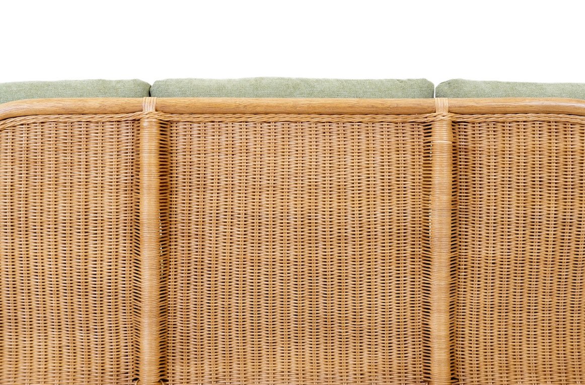 Il salotto in midollino Present ha il telaio in rattan, intrecciato in midollino naturale da 3mm. Finitura trasparente.