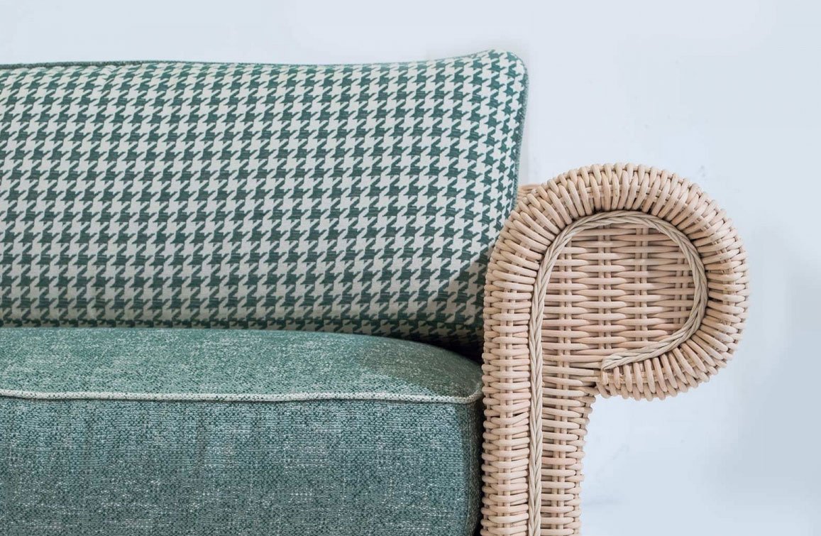 I pezzi che compongono la collezione Professor Brown hanno un telaio in legno rivestito in rattan naturale interamente intrecciato a mano da esperti Maestri Artigiani.