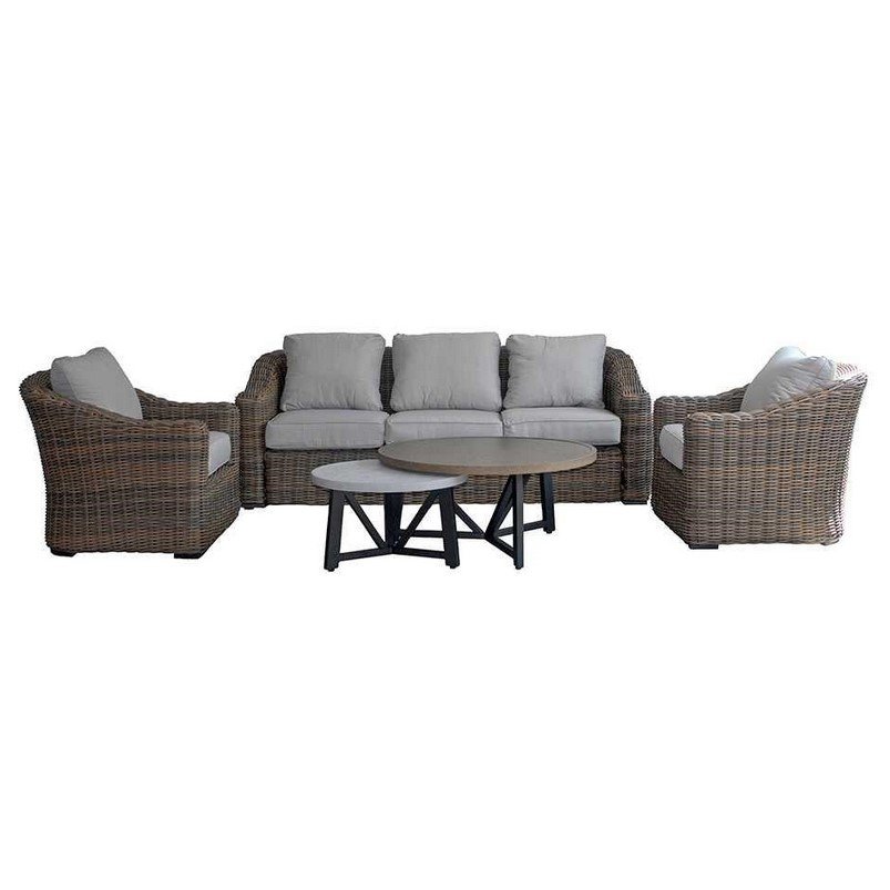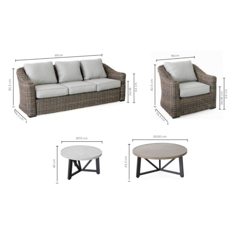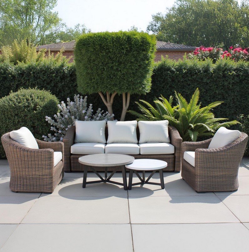 Set da giardino composto da 2 poltrone, un divano a tre posti e due tavolini