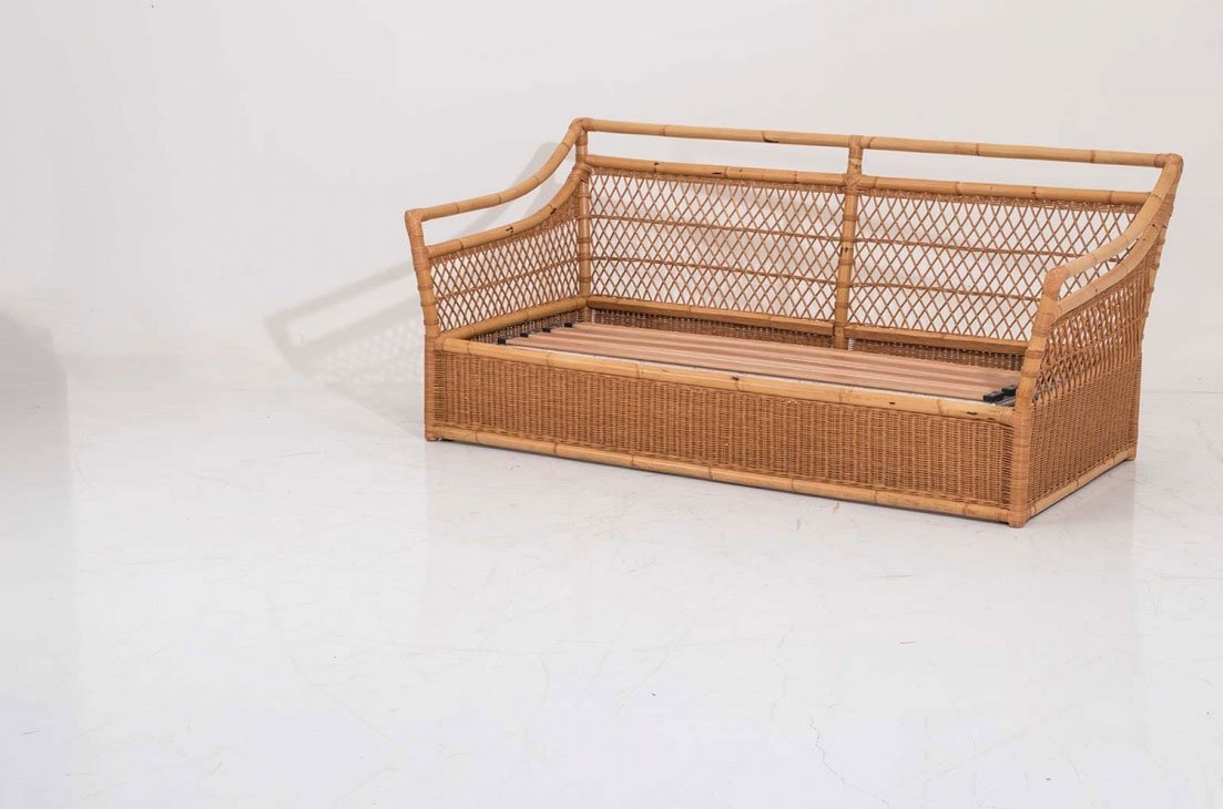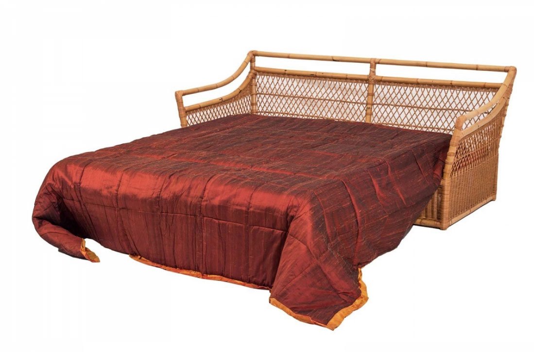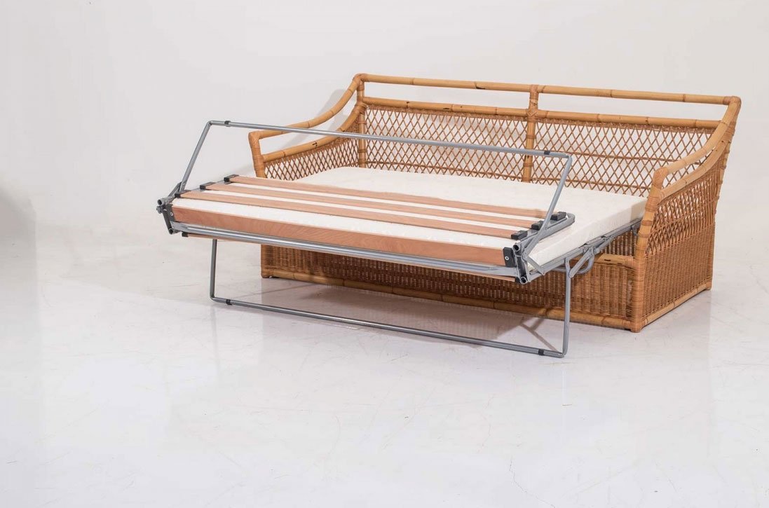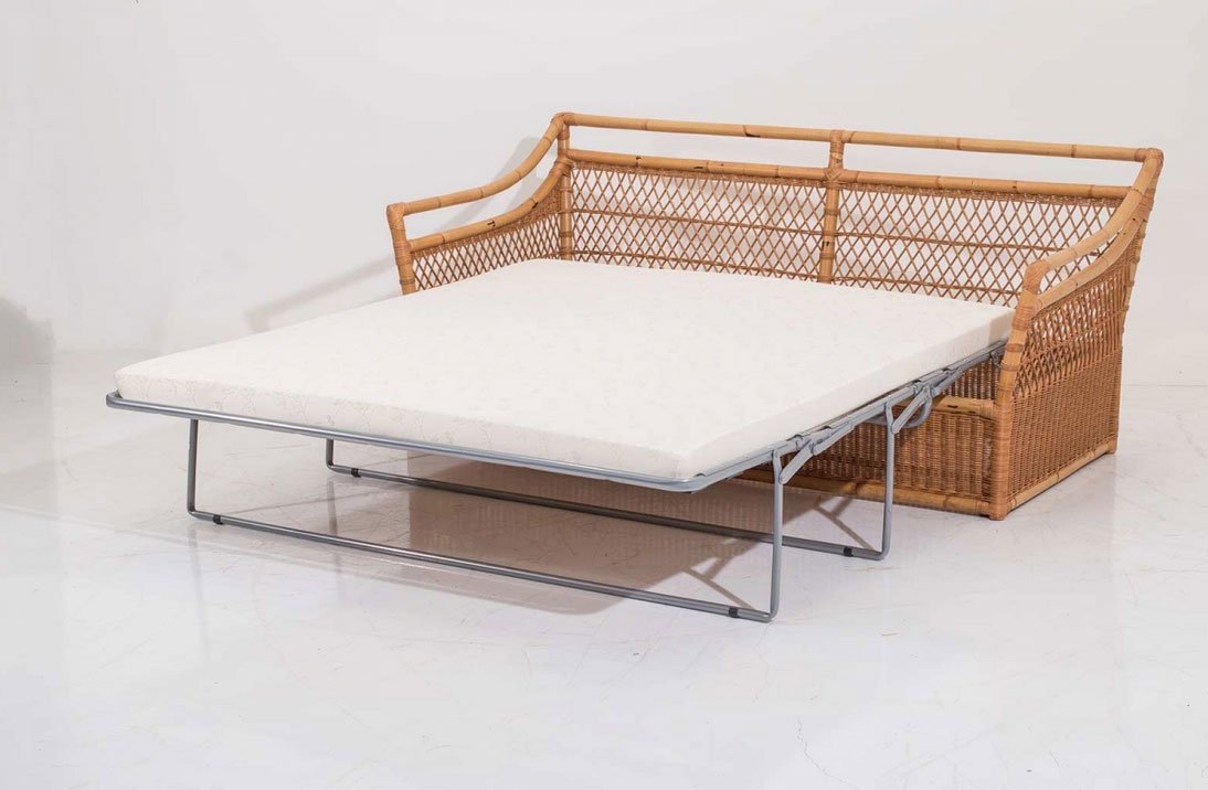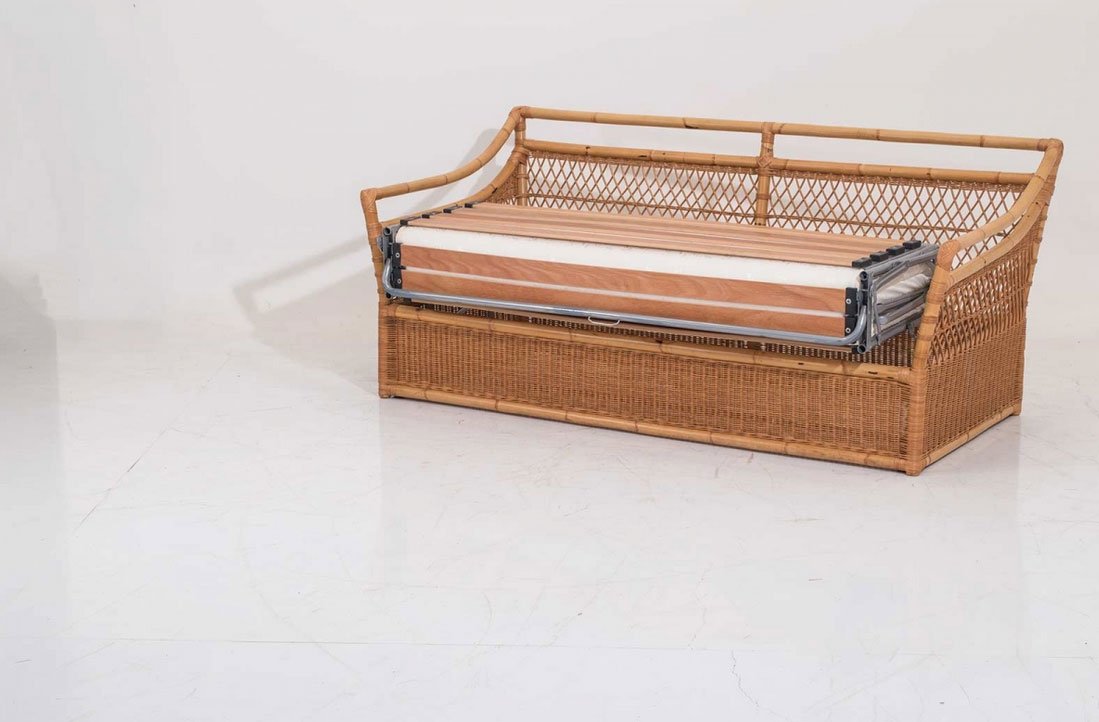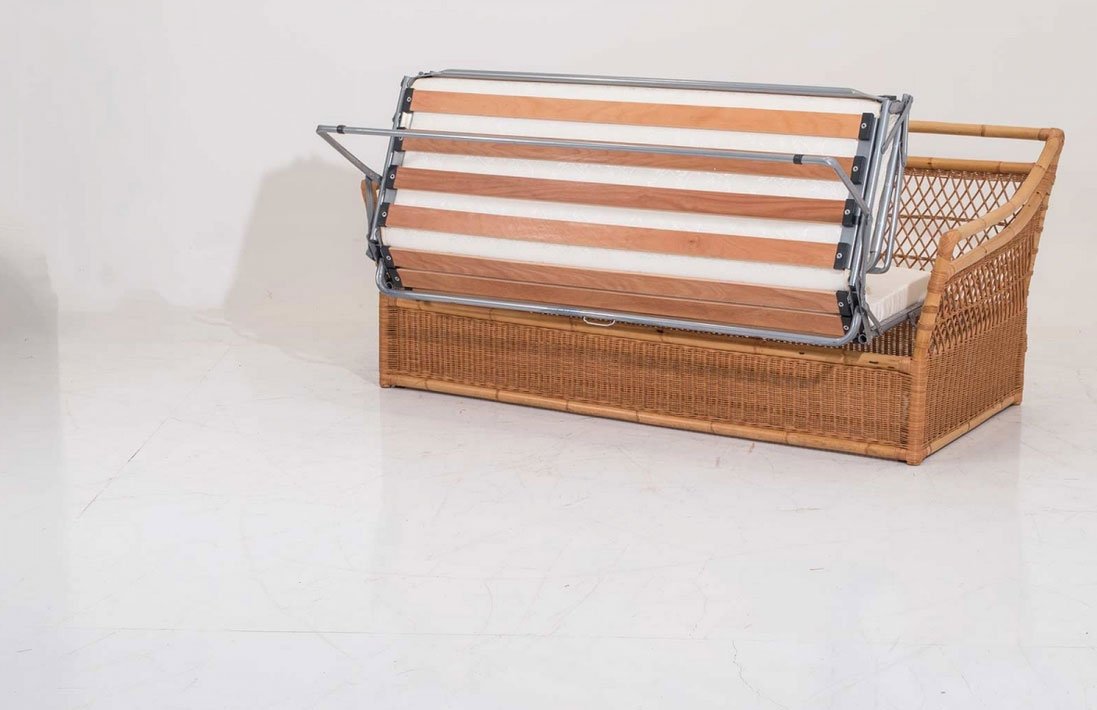 Divano letto intrecciato in rattan naturale con finitura trasparente opaca